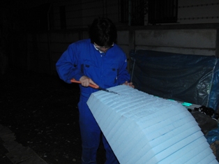 こんばんは、駆動系担当の高橋です。 今日は工作センターでボルトの加工をした後、カウル型制作のお手伝いをしました。 のこぎりで大体の形に削ります。 くまちゃんこと熊倉君にも手伝ってもらいました。 紙やすりで滑らかにしています。 もちろんこの方(Jさん)も制作しています。 ・・・ 上の写真では型を削っていますが 削りすぎた時はパテで補修します。 白くなっているところが補修個所です。 写真ではわかりにくいですが、現物ではこの個所は少しくぼんでいます。 何故くぼんだかと言うと 「パテが固まる際に熱が発生し、型が溶けるためにくぼむ」 とJさんが言っていました。 なので繰り返しパテを塗らないといけませんね 話が長くなってきたので、この辺で失礼します