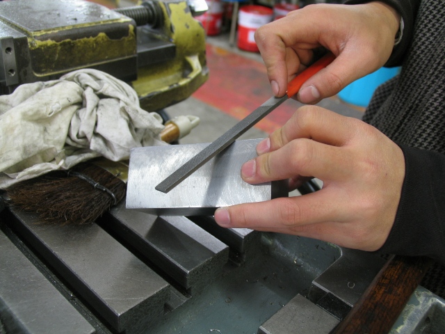 どうもみなさんこんばんは. 最近新発売の缶コーヒーに はまっている下野です. 今日も工作センターで加工三昧です. あと、夕方にSHIMONO製サイレンサーを Mr.大島のMonkeyで試していました. まずは、工作センターでの加工風景をどうぞ! 今日もフレーム班のMr.吉原とMr.大島が 2台のフライス盤を使い同時進行でジグ の六面出しを行ってました。 真剣なMr.吉原 眠そうなMr.大島 目が怖い大島さん 見つめる大島さん 面取りをするMr.吉原 最後の確認 これがなかなか時間が掛かるんです. 午前中にMr,吉原が1個終えました. 吉原・製作 午後も2人とも引き続き六面出しです. 突然、かなづちを気にし始めました. 何を考えているのでしょうか? つなぎに着替えて本気になった様子です. 目が怖い・・・ 「どうだ.俺が大島だ!!」 と、言わんばかりに仁王立ちしてました. 続いてMonkeyでの騒音測定です.