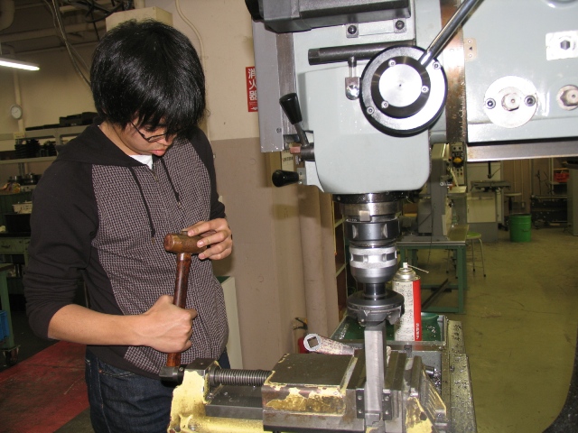 火曜の夜にこんばんは. 最近,時間の流れの速さに ついていけてない下野です. さて,今日も工作センターでほぼおなじみの メンバーで加工をしてきました. フレーム班の大島さんと吉原氏と排気系の僕の 計3人です. 今日は,タイトルどおりゲンさん(吉原氏)に スポットを当てたいと思います. ちなみ,小山さんいわくゲンさんは 土遁属性らしいので雷が怖いらしいです. あと,顔色が茶色らしいです・・・笑