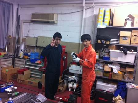 新しく入ったフレーム担当の1年生,電動工具を使ったことがないということで体験!! こちら神崎君と船越君. 船越君は初めてじゃないだろってくらい鋼管の端面だしうまいです! そして几帳面. 次回は,旋盤やフライス盤,溶接のやり方教えたいと思います.